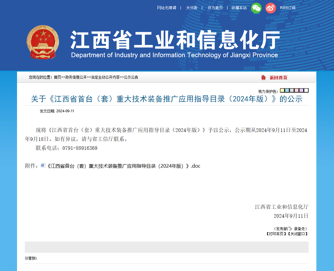 2024年9月11日江西東銳智能裝備科技股份有限公司獲得關(guān)于《江西省首臺(套)重大技術(shù)準(zhǔn)備推廣應(yīng)用指導(dǎo)目錄(2024年版)》的公示...